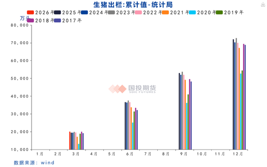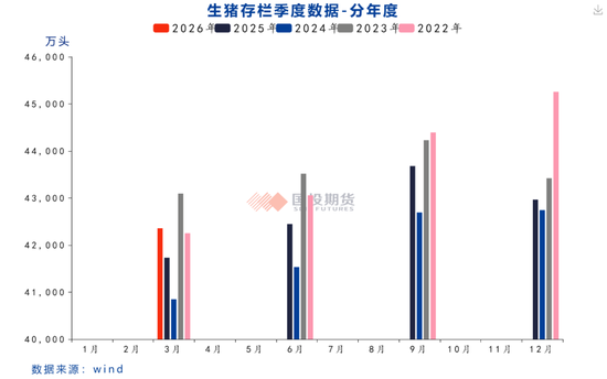 一季度末生猪存栏量42358万头,上年同时41731万头,同比增幅1.5%。从生猪存栏数据来看,2026年一季度末生猪存栏量高于畴昔两年2024及2025年的同时水平。由于生猪存栏将于畴昔0~6个月内出栏,这也就意味着畴昔半年内生猪可出栏数目仍然处在较高水平。