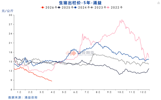 2026年一季度猪肉产量1670万吨,而同时2025年一季度猪肉产量1602万吨,同比增幅4.2%。一季度猪肉产量创下十年最高,浮现一季度猪肉供应极其充裕,春节后猪价快速下落至十年最低水平更多由供应端所鼓动。