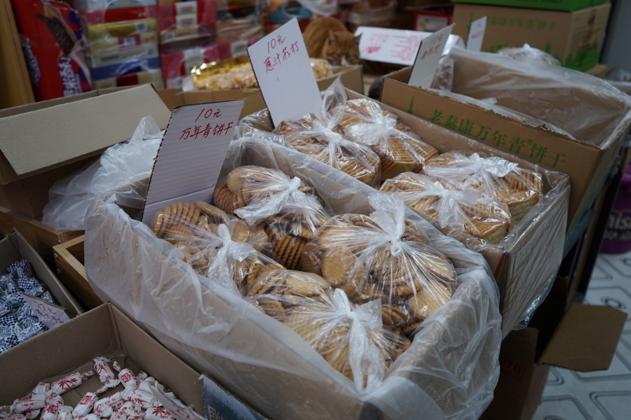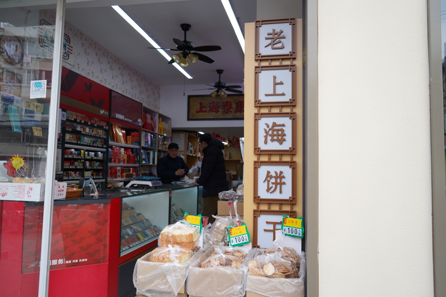 走进店里,一眼望去,买卖面积不算大,所售商品也和寻常小店差未几,唯独较为昭彰的特色,是在店里最显眼的位置,摆放着许多散装的饼干,既有泰康、三牛、康元等这么的国产老品牌,也有奥利奥之类的入口大品牌,种类有万年轻、蝴蝶酥、苔条饼干和麻花等,王人是上海市民相比可爱吃的怀旧点心。